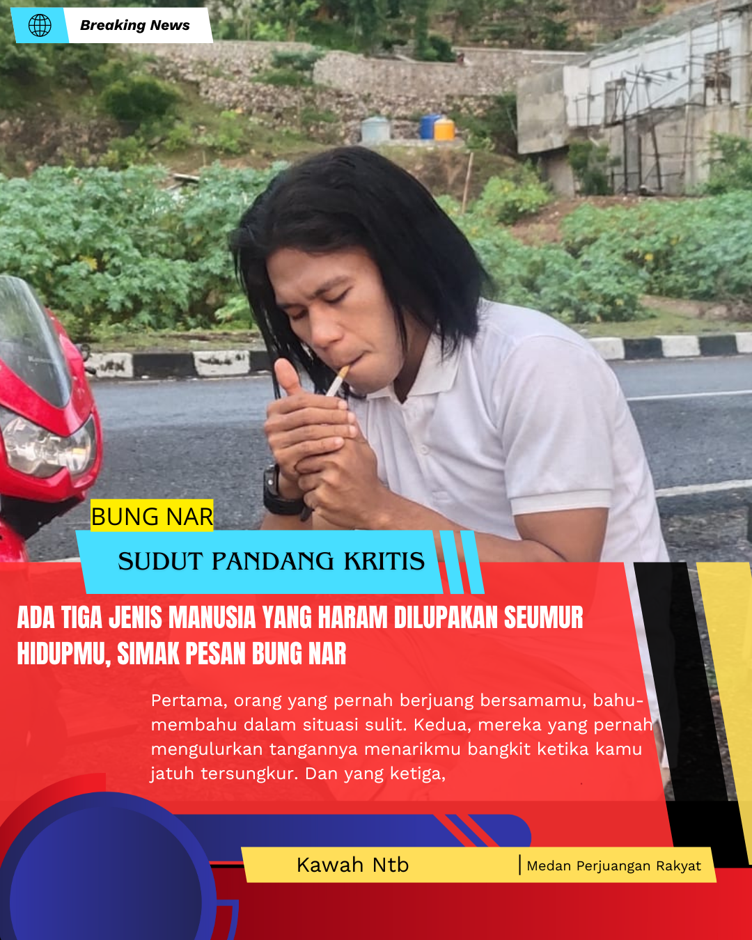 BIMA, 28 November 2025 || Kawah NTB – Di tengah hiruk-pikuk dinamika sosial dan kepentingan yang kian pragmatis, Ketua Umum Lembaga Pejuang Militan Rakyat Nusa Tenggara Barat (Pilar NTB), yang akrab disapa Bung Nar, kembali melontarkan pesan menohok. Kali ini, ia tidak berbicara untuk mengkritiki soal regulasi atau kebijakan publik, melainkan menyoroti etika dasar dalam menjalin hubungan sesama manusia yang menurutnya mulai tergerus.