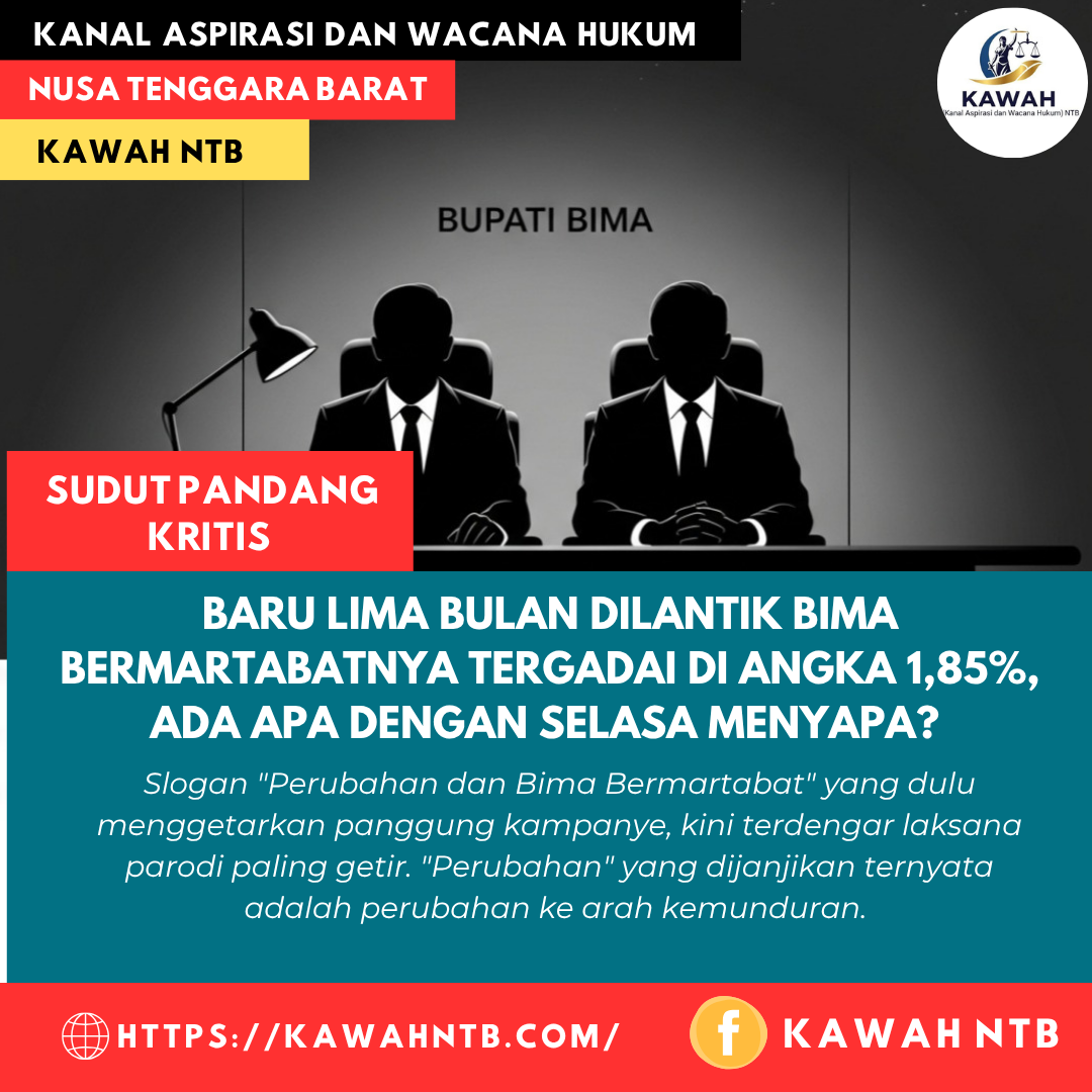 Lima bulan. Waktu yang lebih dari cukup untuk menancapkan tiang pancang pertama sebuah era baru. Namun, apa yang kita saksikan? Slogan “Perubahan dan Bima Bermartabat” yang dulu menggetarkan panggung kampanye, kini terdengar laksana parodi paling getir. “Perubahan” yang dijanjikan ternyata adalah perubahan ke arah kemunduran. “Bima Bermartabat” seolah hanya bersemayam di atas spanduk-spanduk usang, sementara martabat ekonomi daerah terkapar tak berdaya.