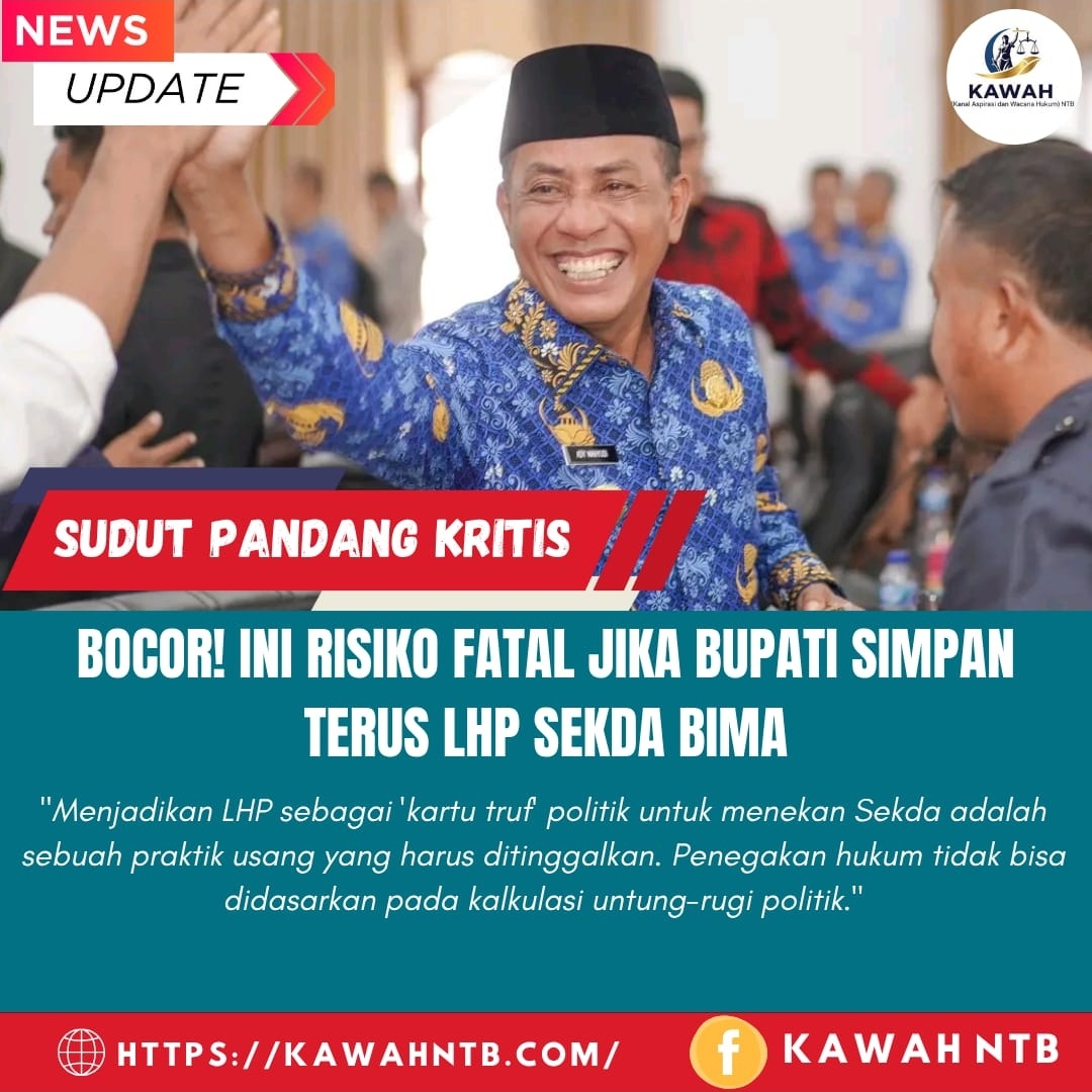BIMA, 11 Agustus 2025 || Kawah NTB – Eskalasi polemik Laporan Hasil Pemeriksaan (LHP) atas Sekretaris Daerah (Sekda) Bima telah mencapai puncaknya. Dokumen hasil audit Inspektorat kini secara resmi berada di meja Bupati Bima, Indah Dhamayanti Putri, yang diwakili oleh Wakil Bupati, Ady Mahyudi. Publik kini menanti dengan cermat, bukan sekadar kelanjutan drama politik, melainkan sebuah langkah konkret yang akan menjadi barometer integritas kepemimpinan dalam menegakkan hukum dan memberantas korupsi.
