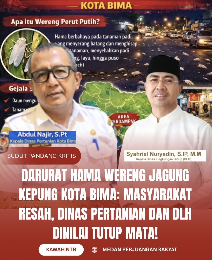 BIMA, 17 April 2026 || Kawah NTB – Kota Bima kini tengah dihadapkan pada darurat lingkungan yang sangat meresahkan. Wabah hama jagung, atau yang secara lokal dikenal sebagai wereng perut putih (wereng daun jagung), kini semakin merajalela dan tak terkendali. Ironisnya, di tengah kepanikan dan penderitaan warga, dua instansi yang memikul tanggung jawab penuh Dinas Pertanian dan Dinas Lingkungan Hidup (DLH) Kota Bima justru terkesan lamban, pasif, dan tutup mata terhadap penderitaan masyarakat.