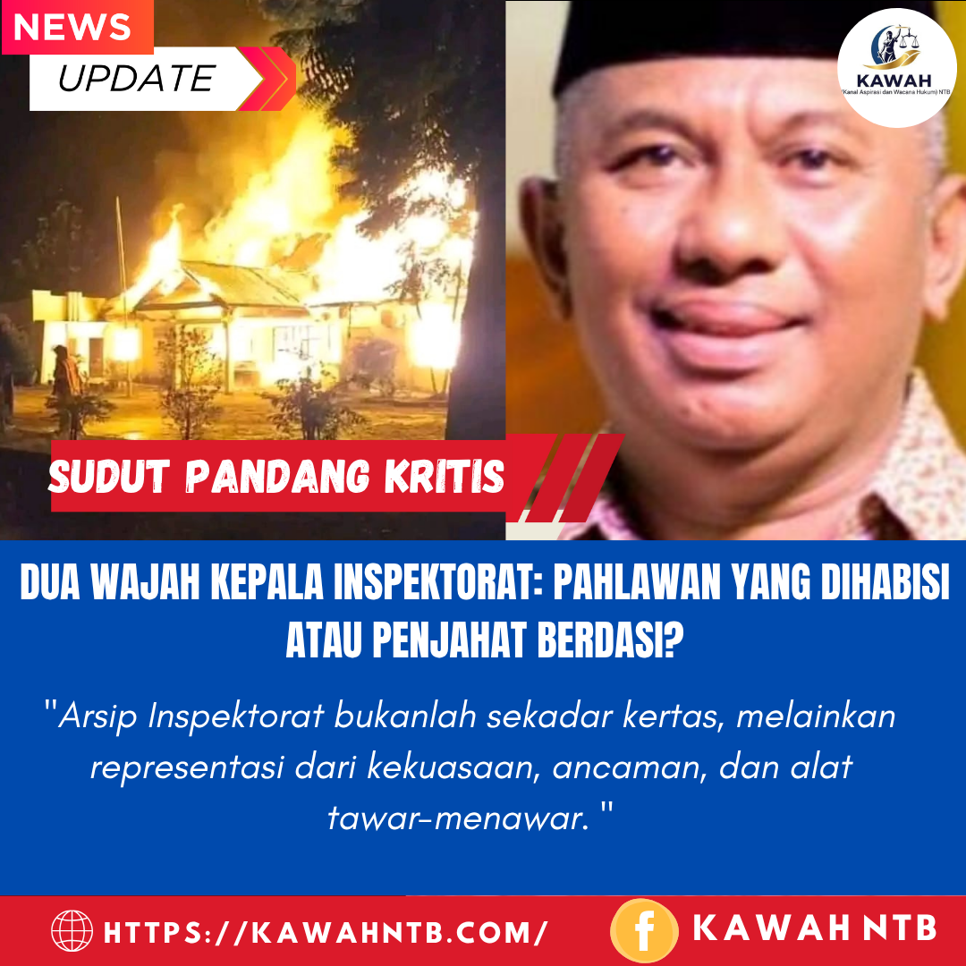 Bima, 8 Agustus 2025 || Kanal Aspirasi dan Wacana Hukum (Kawah) NTB – Kebakaran yang mengubah Kantor Inspektorat Kabupaten Bima menjadi abu pada Kamis (7/8/2025) dini hari, memaksa kita untuk menanggalkan analisis naif tentang “musibah”. Dalam panggung politik yang pragmatis, sebuah peristiwa yang begitu rapi dan strategis menghanguskan seluruh dokumen vital di jantung pengawasan internal pemerintah harus dibaca melalui lensa kekuasaan. Pertanyaan sentralnya kini mengerucut pada satu figur kunci: Kepala Inspektorat. Apakah ia adalah dalang utama (pelaku) atau justru pion yang sengaja dikorbankan (tumbal)?