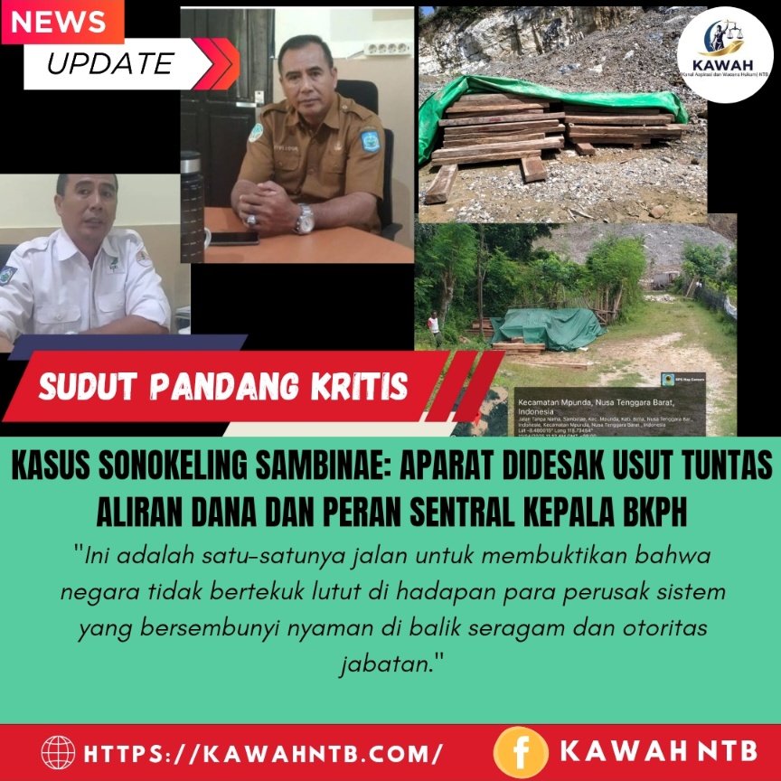 Bima, 6 Agustus 2025 || Kanal Aspirasi dan Wacana Hukum (Kawah) NTB – Seiring dengan meningkatnya tekanan publik, fokus dalam skandal pembalakan liar sonokeling di Sambinae kini beralih pada satu kata kunci: USUT TUNTAS. Desakan ini secara spesifik menargetkan penyelidikan mendalam terhadap keterlibatan dan peran sentral Kepala BKPH Maria Donggo Masa, Ahyar, yang diduga lebih dari sekadar lalai, melainkan menjadi bagian inti dari masalah.