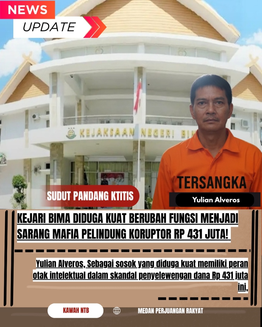 BIMA, 4 November 2025 || kawah Ntb – Kesabaran publik Bima telah habis. Drama lima tahun kasus korupsi RSUD Sondosia senilai Rp 431 juta telah mencapai titik didih. Kejaksaan Negeri (Kejari) Bima, institusi yang seharusnya menjadi algojo bagi penjahat kerah putih, kini justru dituding telah menjelma menjadi Benteng Baja dan Sarang Mafia tempat berlindung para koruptor. Tiga nama tersangka, Mahfud, Kadarmansyah, dan terutama Yulian Alveros, seolah mendapat karpet merah kebal hukum dari oknum-oknum di Kejari Bima.