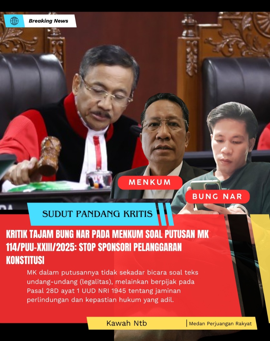 BIMA, 25 November 2025 || Kawah NTB – Gelombang perdebatan pasca Putusan Mahkamah Konstitusi (MK) Nomor 114/PUU-XXIII/2025 yang melarang anggota Polri aktif menduduki jabatan sipil semakin memanas. Di tengah narasi “aman” yang dibangun pemerintah melalui Menteri Hukum (Menkum) bahwa putusan ini tak berlaku surut, sebuah tamparan keras datang dari daerah.