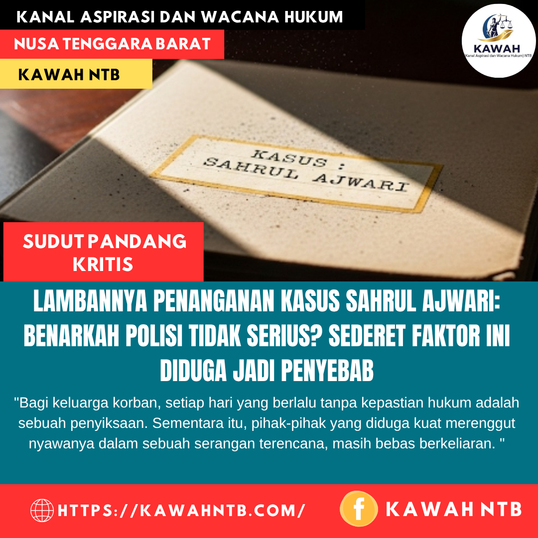 Bima, 1 Agustus 2025 || Kanal Aspirasi dan Wacana Hukum (Kawah) NTB – Dua bulan sudah sebuah keluarga di Bima hidup dalam penantian yang menyakitkan. Sejak kematian tragis seorang pemuda pada 7 Juni 2025, harapan untuk melihat keadilan ditegakkan terasa semakin jauh. Berkas kasus yang mandek di tahap penyelidikan di Satuan Reserse Kriminal (Satreskrim) Polres Bima Kabupaten telah menggoreskan luka yang lebih dalam, memicu satu pertanyaan pedih: mengapa aparat penegak hukum terkesan tidak serius mengungkap kebenaran di balik kematian pemuda tersebut?