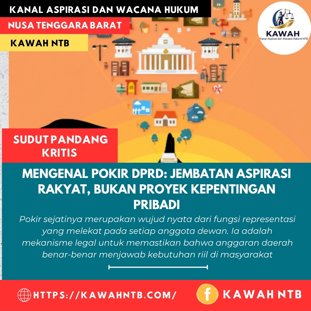 Bima, 26 Juli 2925 || Kanal Aspirasi dan Wacana Hukum (Kawah) NTB – Istilah “Pokok Pikiran” atau yang akrab disebut “Pokir” Dewan kerap terdengar riuh setiap kali pembahasan Anggaran Pendapatan dan Belanja Daerah (APBD) dimulai. Tak jarang, istilah ini diiringi nada curiga dan disalahpahami sebagai “jatah” atau proyek pribadi anggota dewan.