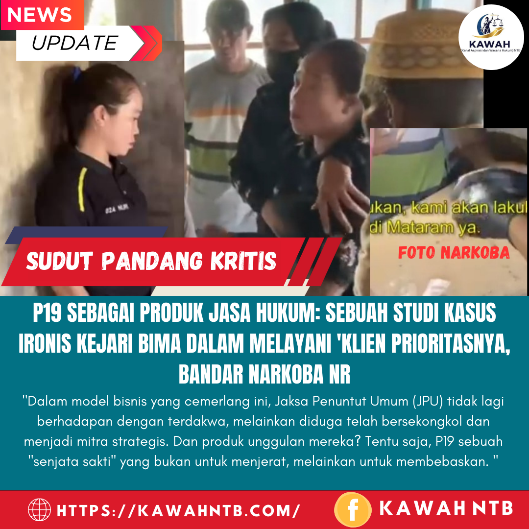 BIMA, 17 Agustus 2025 || Kawah NTB – Publik harus berhenti memandang Kejaksaan Negeri (Kejari) Raba Bima dengan kacamata usang. Lupakan sejenak peran mereka sebagai penuntut umum dalam perang melawan narkoba. Dalam kasus bandar terbesar Nuriflidah alias NR, Kejari Raba Bima diduga kuat telah melakukan disrupsi, sebuah inovasi radikal: mengubah fungsi penuntutan menjadi sebuah butik layanan hukum eksklusif bagi para pelaku kejahatan.