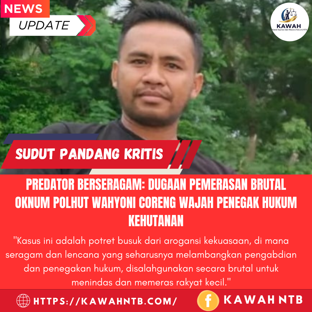 BIMA, 18 Agustus 2025 || Kawah NTB – Setahun telah berlalu sejak insiden yang mencoreng muruah institusi Polisi Kehutanan (Polhut) terjadi di lereng Gunung Sangiang, Kecamatan Wera. Namun, bagi Hendra dan rekan-rekannya, peristiwa pada Agustus 2024 itu menyisakan luka dan ketakutan mendalam. Seorang oknum Polhut bernama Wahyoni alias Yonif, yang seharusnya menjadi garda terdepan pelestarian alam, justru diduga bertindak sebagai predator berseragam, memeras warga dengan ancaman dan intimidasi.