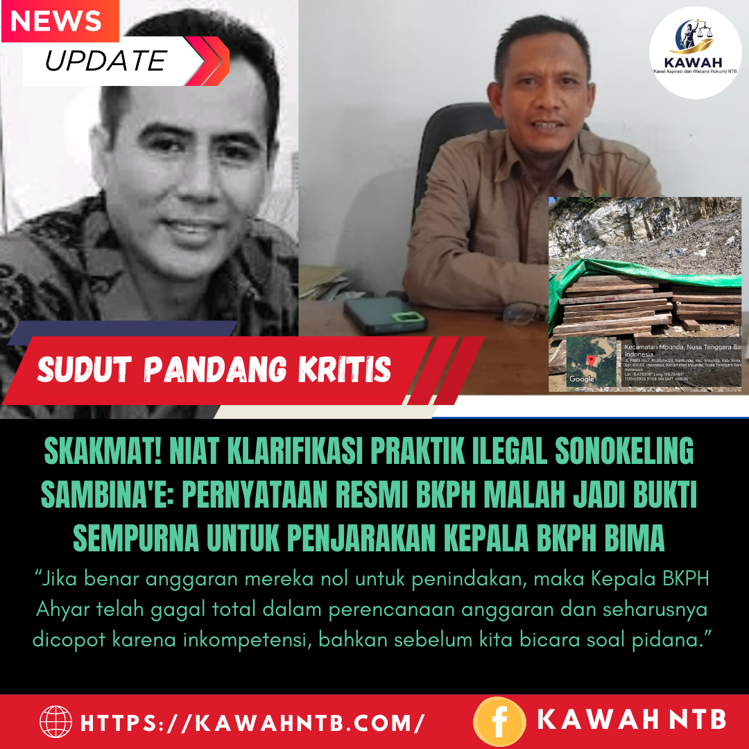 Publik tidak lagi menuntut, tetapi menantang Kejaksaan Negeri Raba Bima untuk segera bertindak. Pernyataan resmi BKPH sudah lebih dari cukup sebagai bukti permulaan.