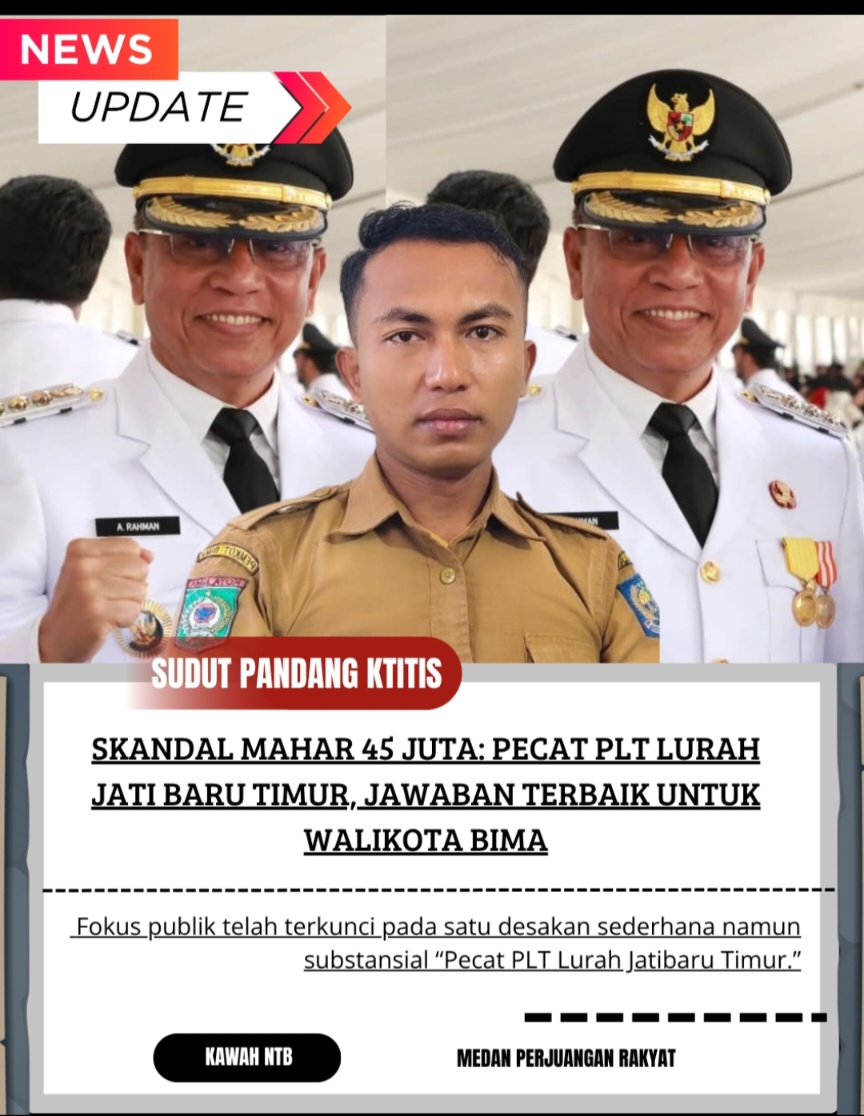 BIMA, 6 November 2025 || Kawah NTB – Skandal dugaan mahar jabatan Rp 45 juta di Kota Bima telah mencapai titik didih. Jaminan Walikota H.A. Rahman kini tak lebih dari sekadar pepesan kosong, dan klarifikasi blunder dari PLT Lurah Jati Baru Timur, Didiyardiansyah, justru menelanjangi rapuhnya pertahanan Pemkot Bima.