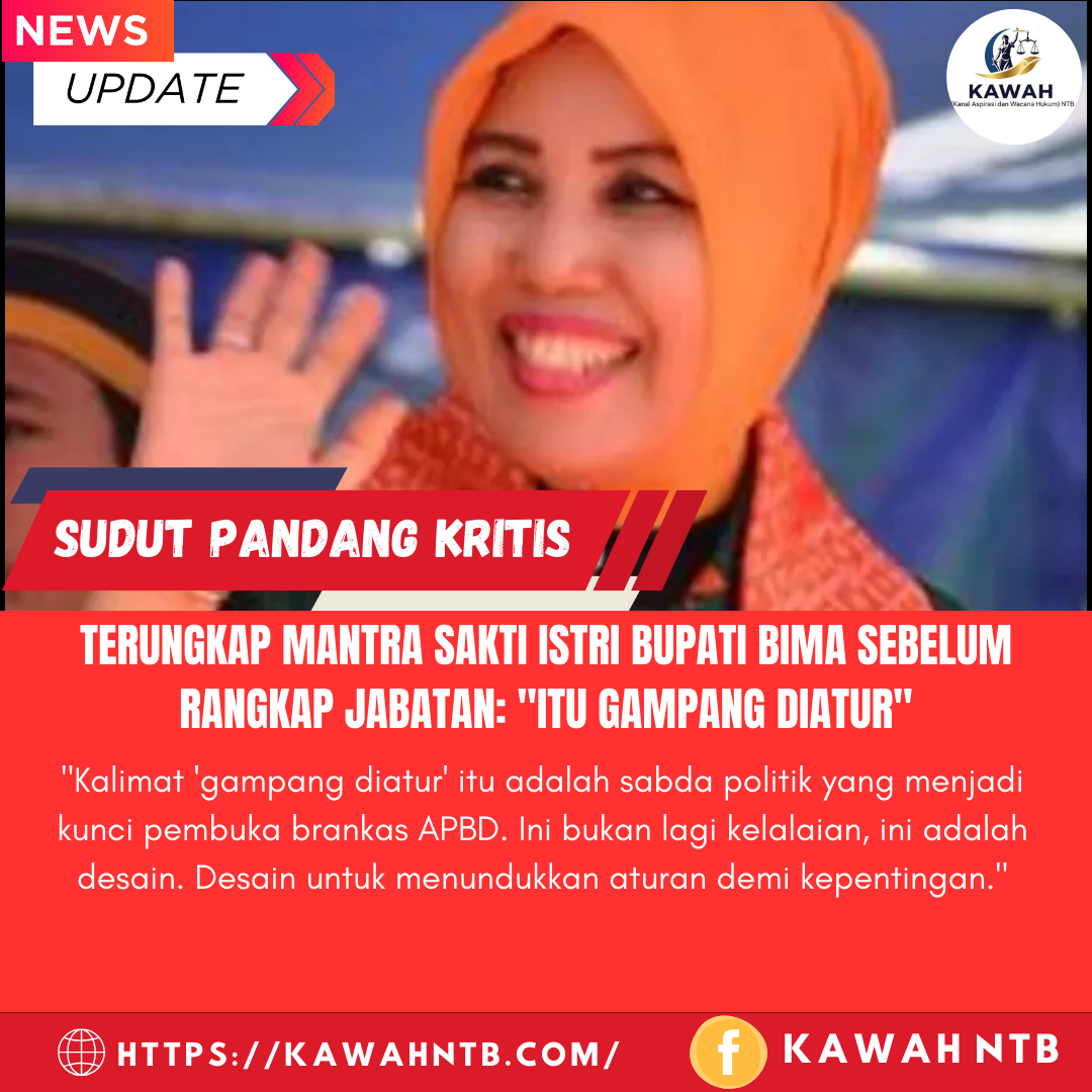 BIMA, 21 Agustus 2025 || Kawah NTB – Di tengah badai polemik rangkap jabatan yang menerpa Wakil Ketua II DPRD Bima, Murni Suciyanti, sebuah informasi baru yang mengejutkan terkuak ke permukaan, mengubah dugaan konflik kepentingan menjadi sebuah drama arogansi kekuasaan yang terang benderang. Terungkap bahwa sebelum resmi dilantik menjadi Ketua Tim Penggerak PKK (TP-PKK), Istri Bupati Bima tersebut sempat diperingatkan oleh beberapa pimpinan Dewan mengenai potensi pelanggaran hukum dan etika.