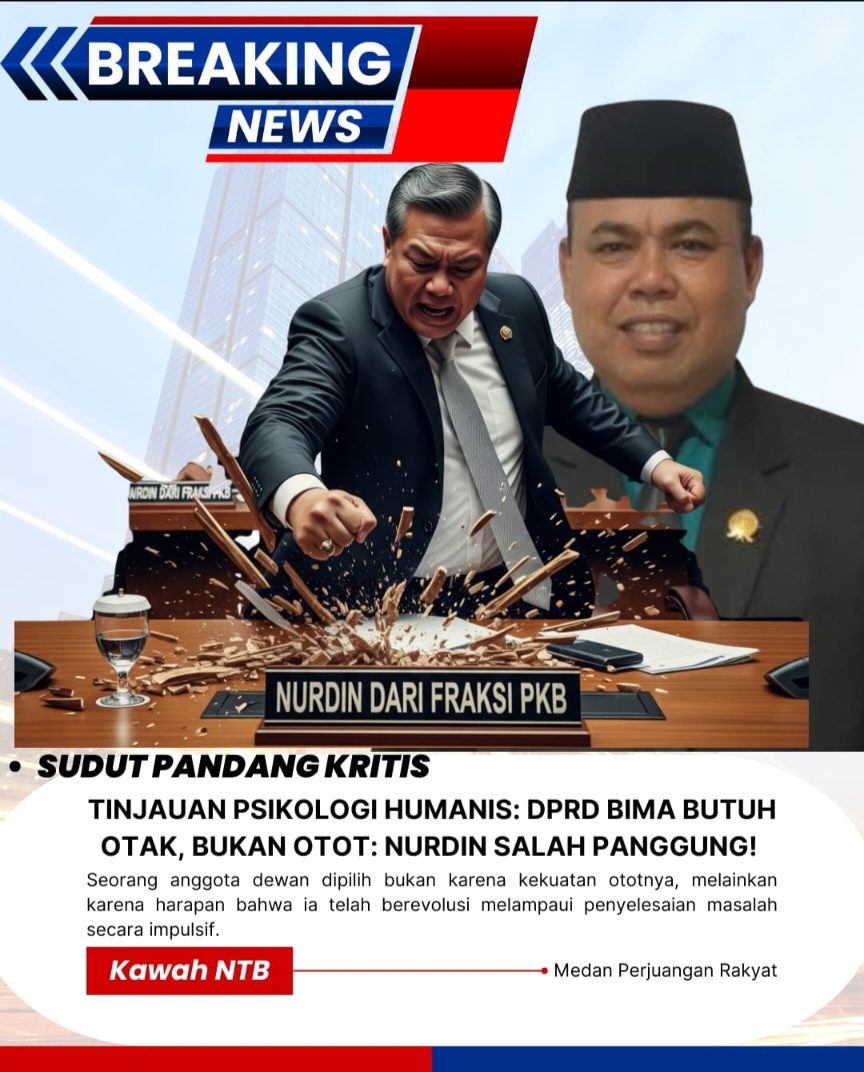 BIMA, 23 Agustus 2025 || Kawah NTB – Ruang sidang paripurna DPRD Bima tidak hanya menyaksikan hancurnya sebuah meja, tetapi juga menjadi saksi sebuah momen tragis dari potensi manusia yang gagal terwujud. Tindakan Nurdin dari Fraksi PKB, ketika dianalisis lebih dalam, melampaui sekadar isu disiplin atau perusakan aset. Ini adalah studi kasus tentang disorientasi kemanusiaan, di mana seorang individu yang dipercaya untuk mencapai level tertinggi dari aktualisasi diri sebagai negarawan, justru memilih untuk regresi ke respons paling dasar: agresi.