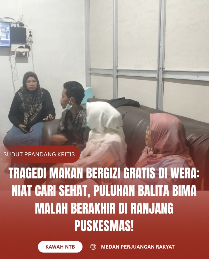 BIMA, 6 April 2026 || Kawah NTB – Program Makan Bergizi Gratis (MBG) yang digadang-gadang sebagai pilar untuk mencetak generasi sehat dan bebas stunting, justru berubah menjadi petaka di Kecamatan Wera, Kabupaten Bima. Pada hari Sabtu (4/4/2026), sebanyak 24 warga dilarikan ke Puskesmas Wera akibat keracunan massal. Ironisnya, korban didominasi oleh kelompok paling rentan yang seharusnya dilindungi oleh program ini: 19 balita usia TK/PAUD dan seorang ibu hamil.